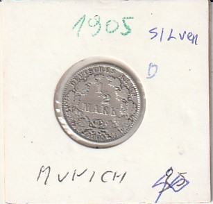 NJEMAČKA 1/2 MARK 1905 D SILVER