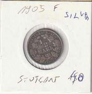 NJEMAČKA 1/2 MARK 1905 F SILVER