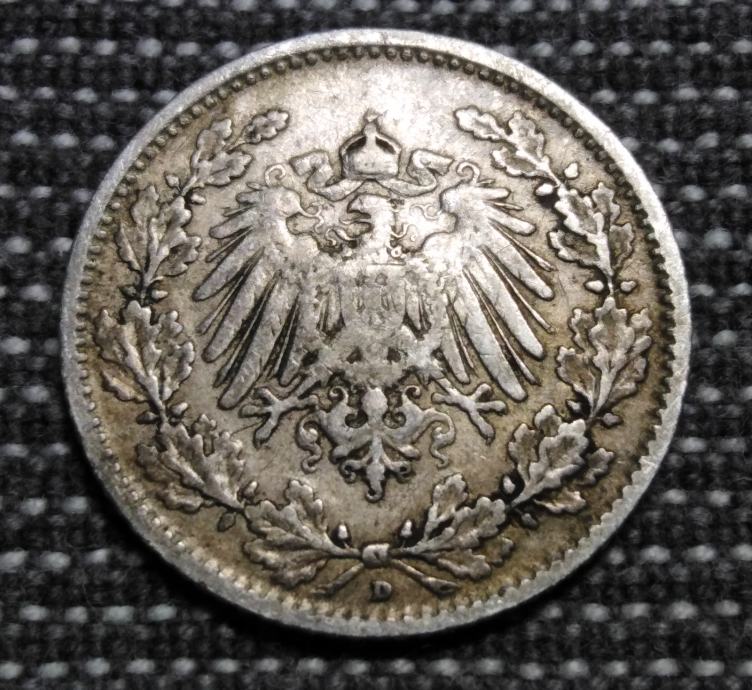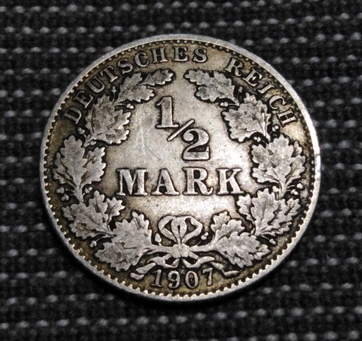 Njemačka 1/2 MARK 1907 D SREBRO