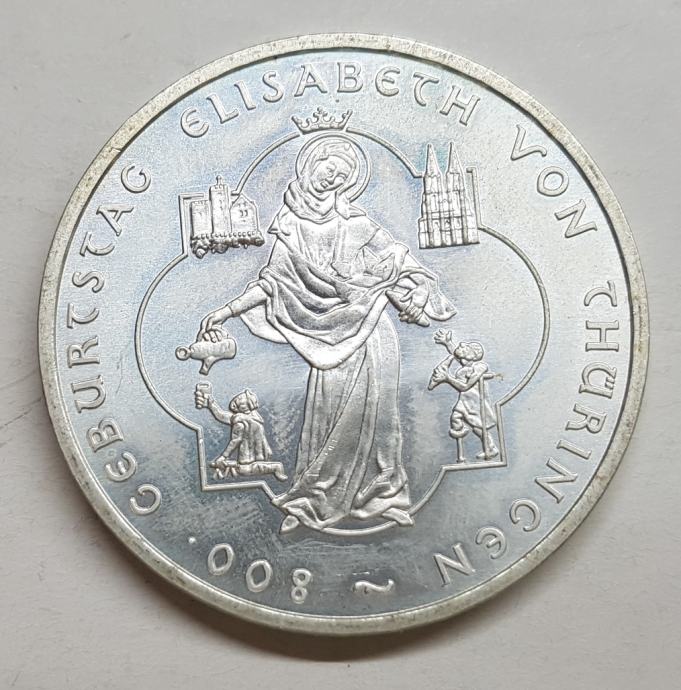 NJEMAČKA 10 EURO 2007, 800. ROĐENDAN ELISABETH OD THURINGEN, SREBRO