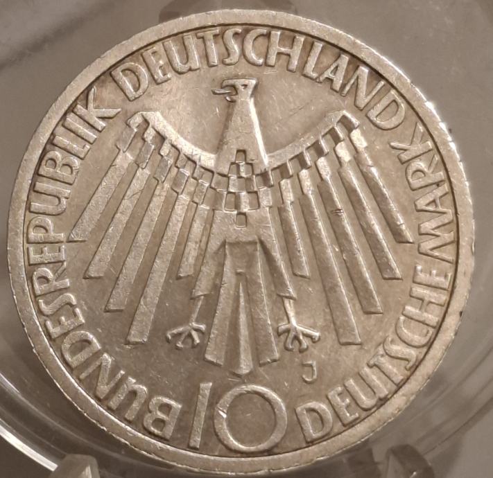 NJEMAČKA 1972 J - 10 MARAKA - SREBRO