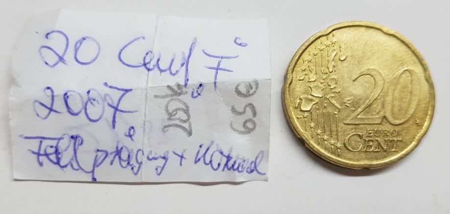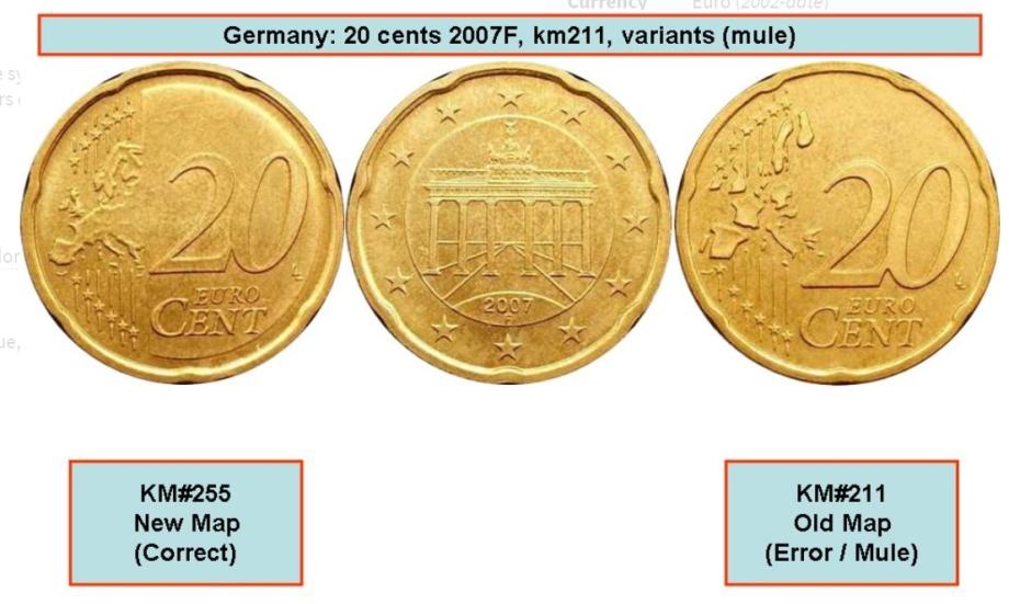 NJEMAČKA 20 EURO CENT 2007. ERROR, PRINT GREŠKA STARI ZEMLJOVID EUROPE