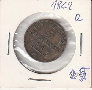 NJEMAČKA 5 PFENGA 1862 A COPER-NIKAL