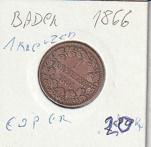 NJEMAČKA BADEN 1 KREUZER 1866 COPER