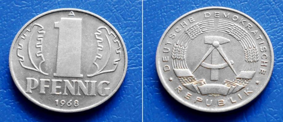 NJEMAČKA DDR GERMANY 1 PFENNIG 1968 A KM. 8.1 - GRB ČEKIĆ I KOMPAS