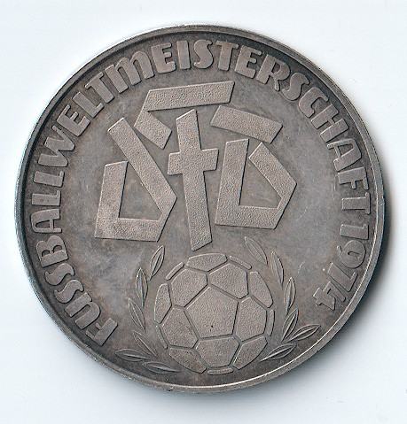 Srebrna medalja izdana povodom Svjetskog prvenstva u nogometu 1974. u Njemačkoj.