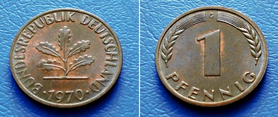 NJEMAČKA GBR GERMANY 1 PFENNIG 1970 G KM:105 - LISTOVI HRASTA