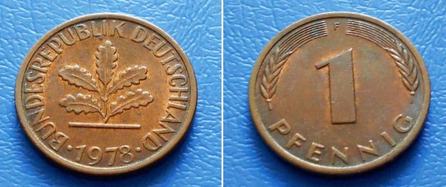 NJEMAČKA GBR GERMANY 1 PFENNIG 1978 F KM:105 - LISTOVI HRASTA