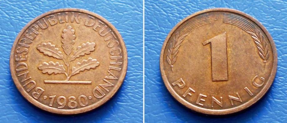 NJEMAČKA GBR GERMANY 1 PFENNIG 1980 J KM:105 - LISTOVI HRASTA