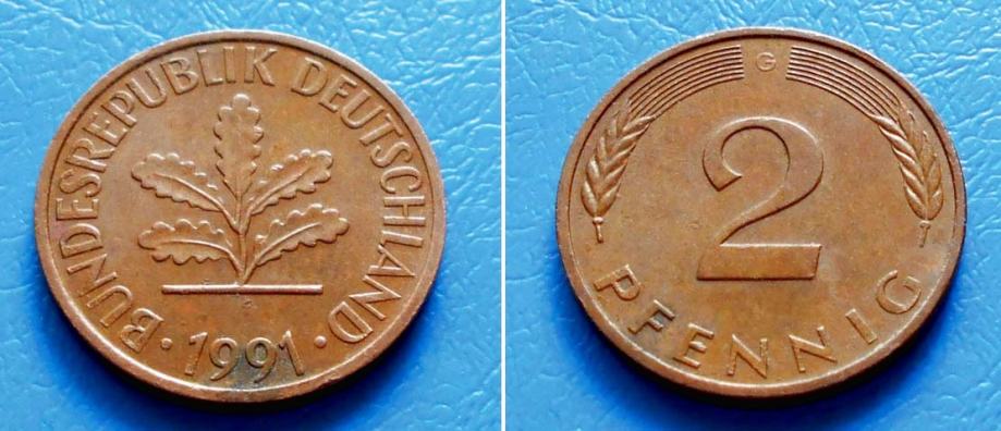 NJEMAČKA GBR GERMANY 2 PFENNIG 1991 G KM:106a - LISTOVI HRASTA
