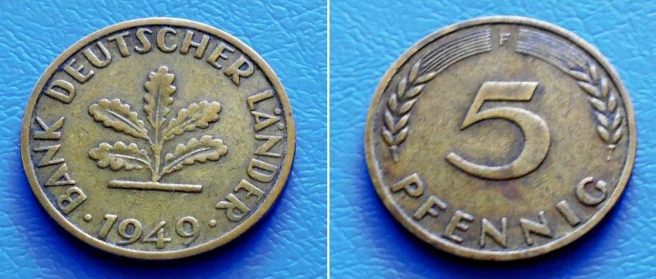 NJEMAČKA GBR GERMANY 5 PFENNIG 1949 F KM:102 - LISTOVI HRASTA