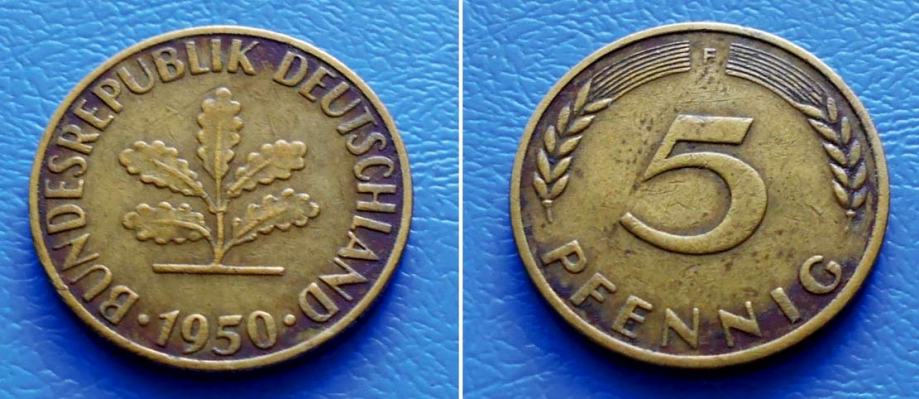 NJEMAČKA GBR GERMANY 5 PFENNIG 1950 F KM:107 - LISTOVI HRASTA