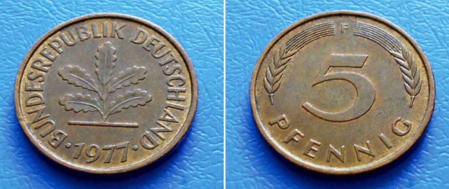 NJEMAČKA GBR GERMANY 5 PFENNIG 1977 F KM:107 - LISTOVI HRASTA