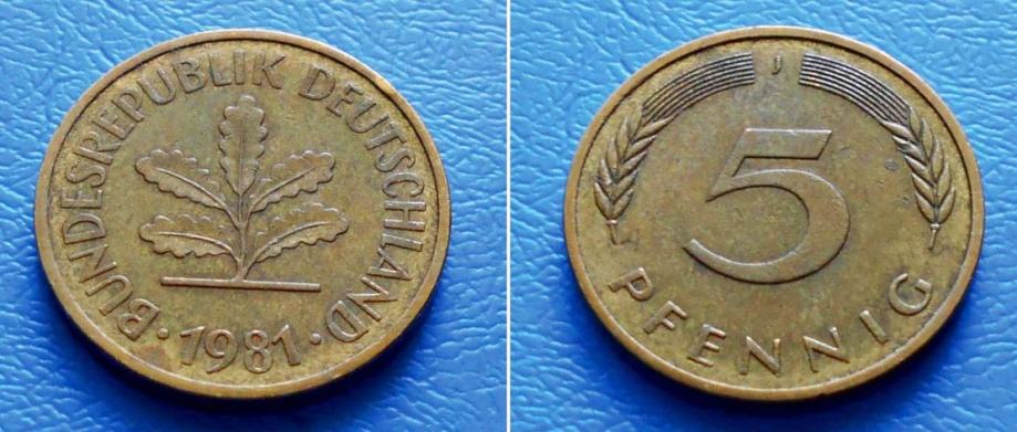 NJEMAČKA GBR GERMANY 5 PFENNIG 1981 J KM:107 - LISTOVI HRASTA