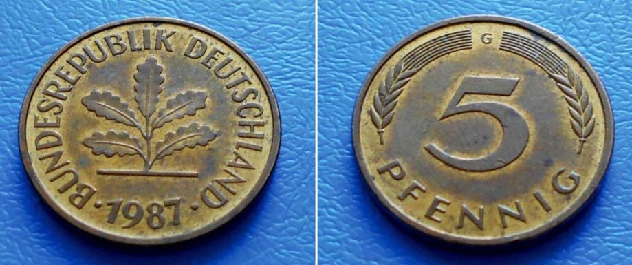 NJEMAČKA GBR GERMANY 5 PFENNIG 1987 G KM:107 - LISTOVI HRASTA