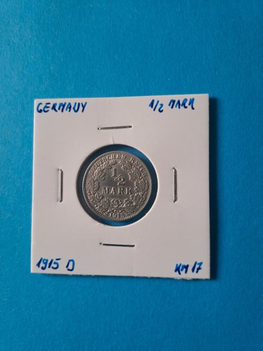 Njemačka (Germany) 1/2 Mark 1915D srebro
