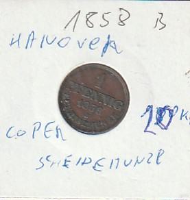 NJEMAČKA HANOVER 1 PFENGA 1858 B COPER