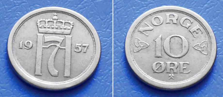 NORVEŠKA NORGE 10 ORE 1957 KM. 396 - HAAKON VII