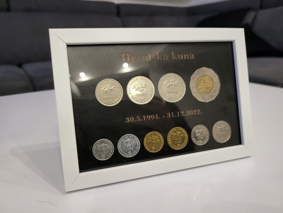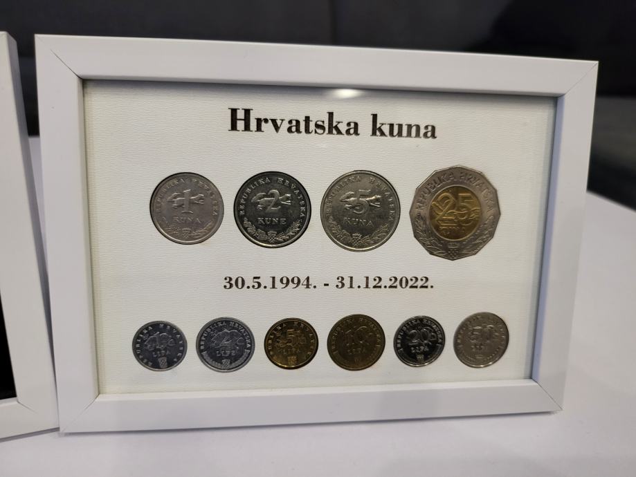 Prodajem okvire sa kovanicama (od1lp do 25 kn) za uspomenu u bijeloj, crnoj i krem boji…