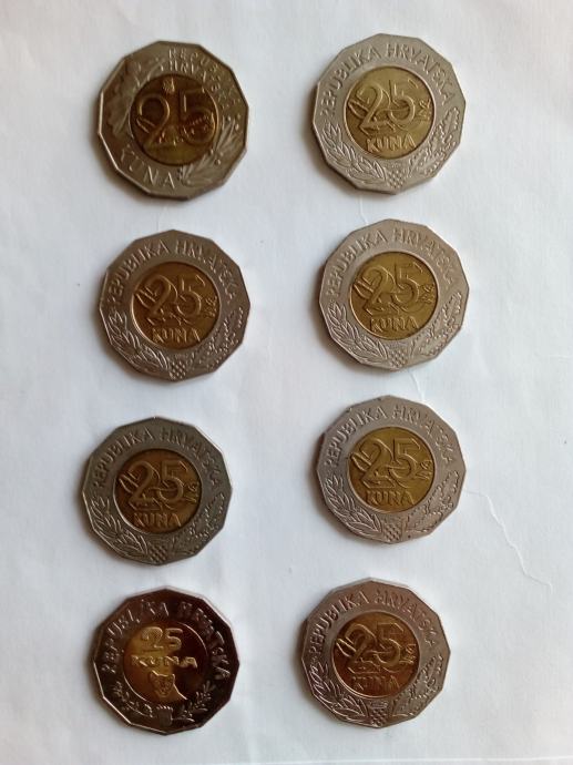 Paket od osam različitih kovanica od 25 kuna
