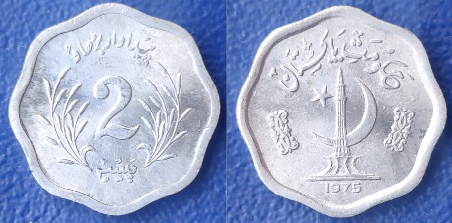 Pakistan 2 paisa, 1975 Crescent with monument under lettering ***/
