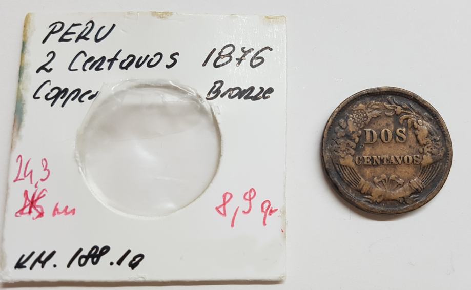 PERU, DOS 2 CENTAVOS, 1876.