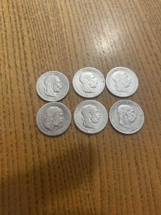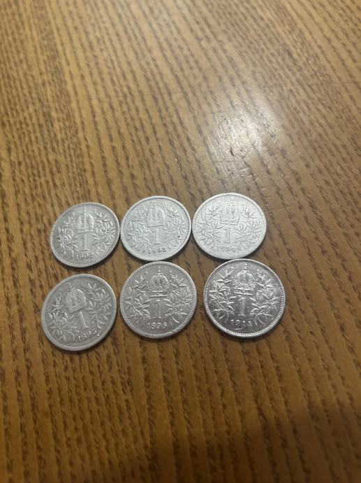 ŠEST SREBRNIH KOVANICA 1 KORONA AUSTRIJA 1892,1893,1894,1895,1896 i 1914