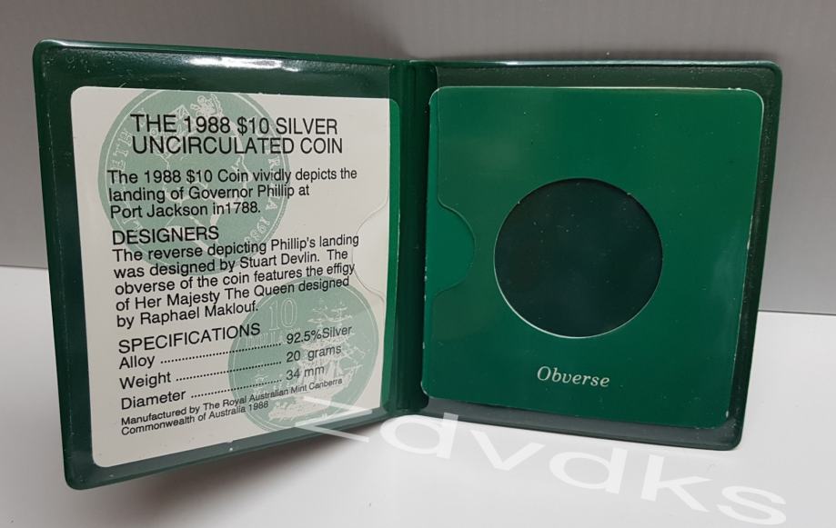 PRAZNI ETUI SA CERTIFIKATOM ZA SREBRNJAK, AUSTRALIAN MINT 10$, 1988