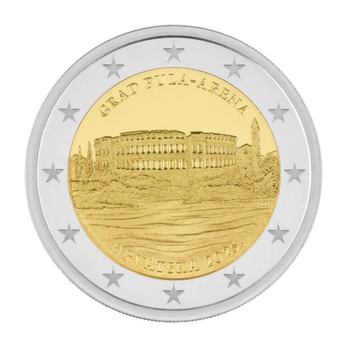Hrvatska narodna banka pustila je u optjecaj prigodnu kovanicu od 2 eura iz serije „Hrvatski gradovi”. Na kovanici je prikazana pulska Arena, jedan od najpoznatijih spomenika antičkoga graditeljstva u Hrvatskoj. Ovaj simbol grada Pule ima veliko povijesno i kulturno značenje za Republiku Hrvatsku i svijet, a njegov je prikaz nekad bio i jedan od glavnih motiva na naličju novčanice od 10 kuna.