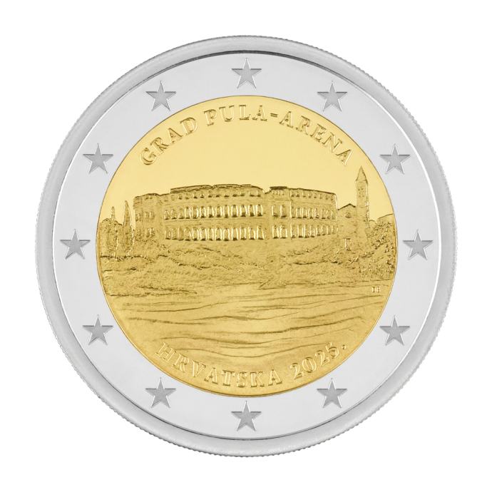 Hrvatska narodna banka pustila je u optjecaj prigodnu kovanicu od 2 eura iz serije „Hrvatski gradovi”. Na kovanici je prikazana pulska Arena – jedan od najpoznatijih antičkih spomenika u Hrvatskoj. Ovaj prepoznatljivi simbol grada Pule, iznimne povijesne i kulturne važnosti za Hrvatsku i svijet, nekoć je bio i jedan od glavnih motiva na naličju novčanice od 10 kuna.