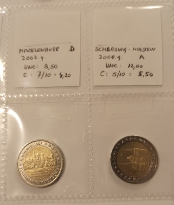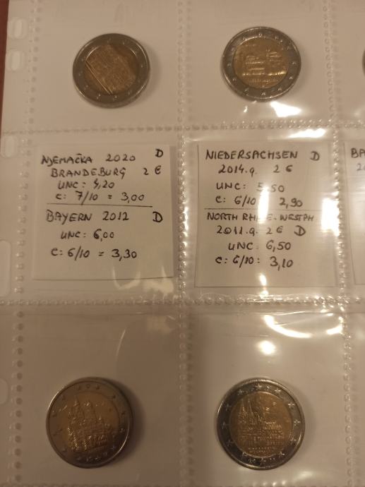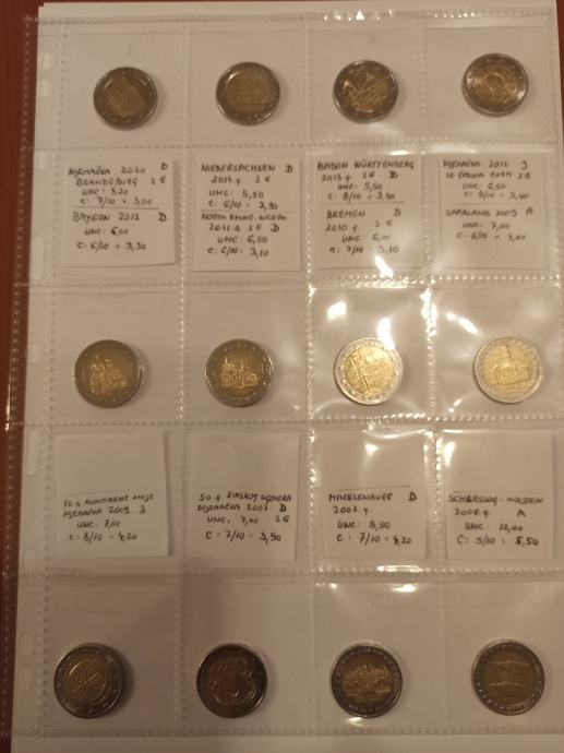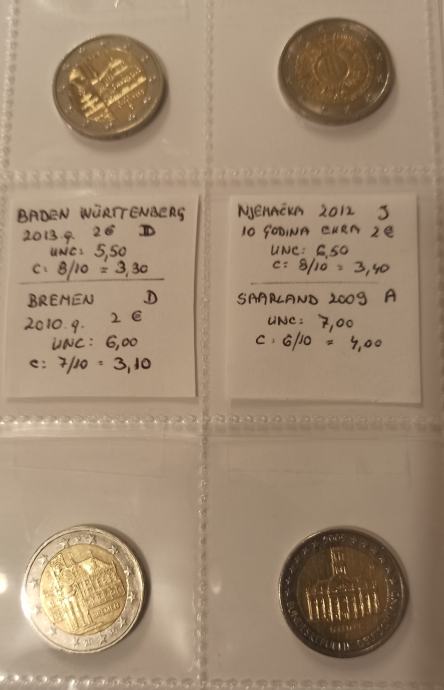 Prigodne kovanice 2 eura Njemačka. Na slikama su cijene za svaku pojedinu kovanicu i stanje opticajne kovanice. Možete izabrati koju kovanicu želite ili sve.