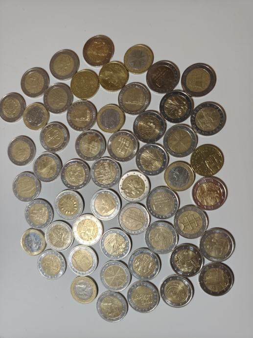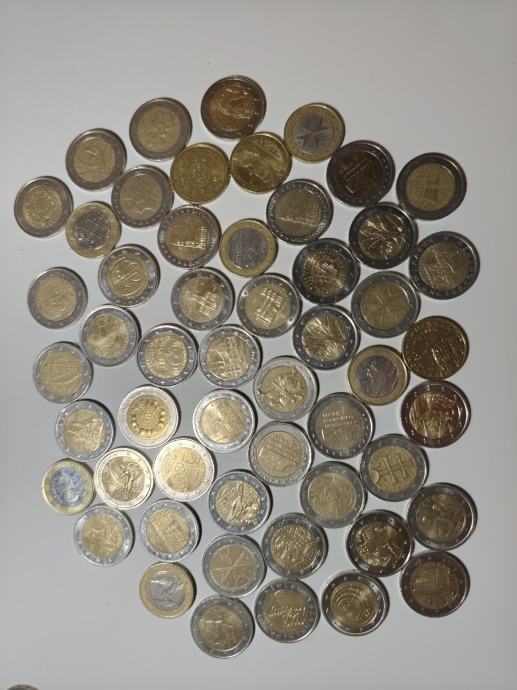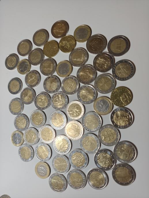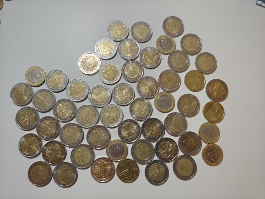 Hrpa prigodnih eura različitih država i godina; 44×2, 6×1 i 3× 0.50 €. Neke vrijednije, neke malo manje
