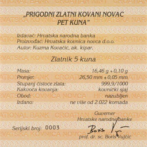 Sastavni dio ovog izdanja je certifikat o autentičnosti Hrvatske narodne banke te originalna plava poklon kutija.