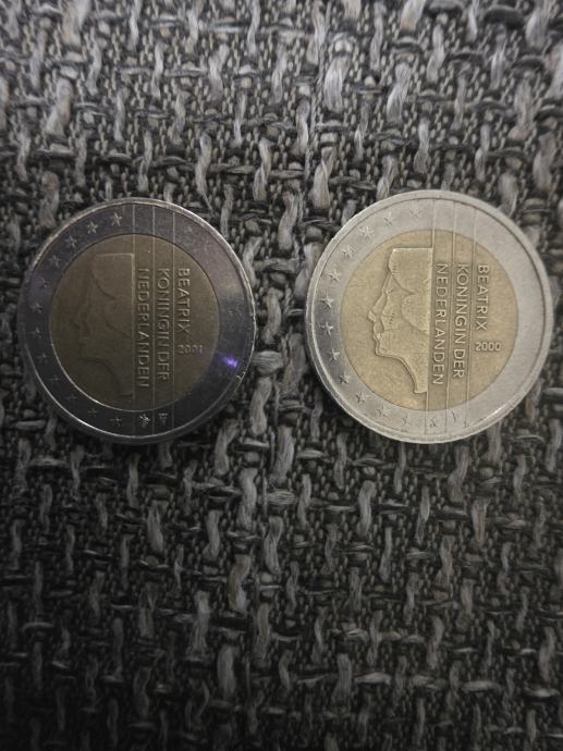 2 kovanice Beatrix od 2 eura rijetke iz 2000 i 2001 godine. Može skupa, a može i pojedinačno.