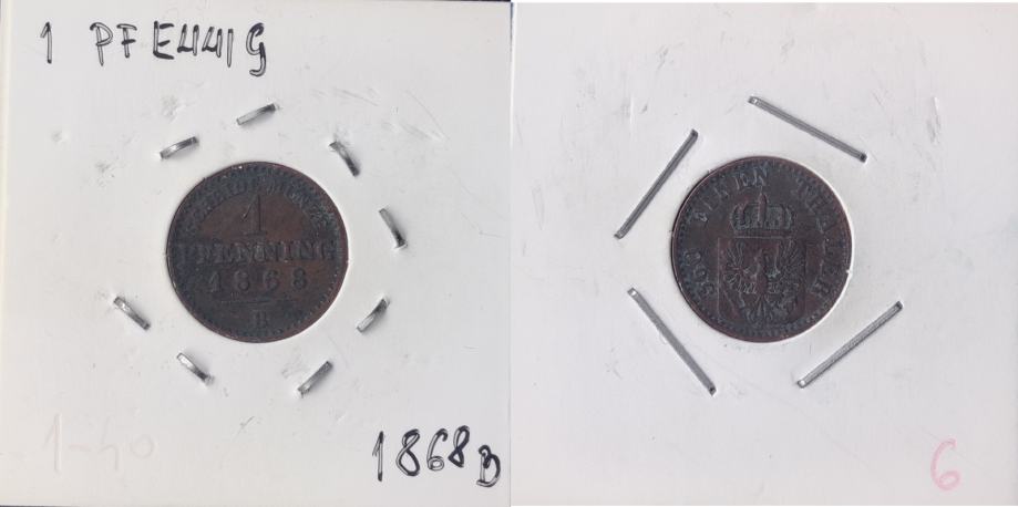 Prussia 1 pfennig, 1868 "B" - Breslau ***/ 6,20 EURO !!!
