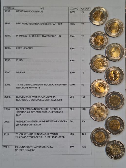 -set od 12 komada prigodnih kovanica od 25 kuna, cijena za set 100€, cijene pojedinačno na slici 2