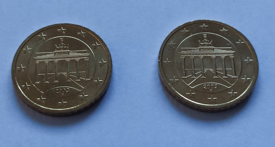 1. Dvije kovanice od 50 euro centi (Germany) iz 2003. godine, obje kovanice imaju određene pogreške, vidljivo na slikama kao i drugi detalji,