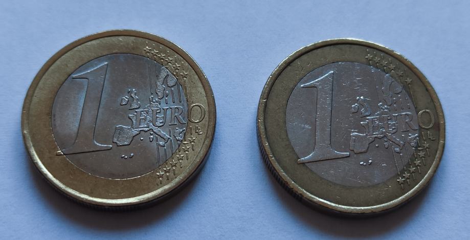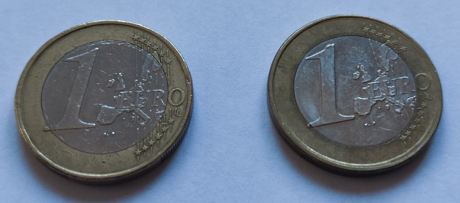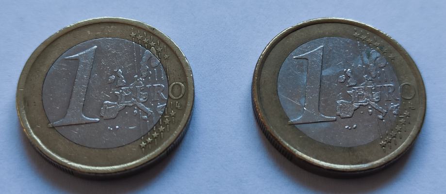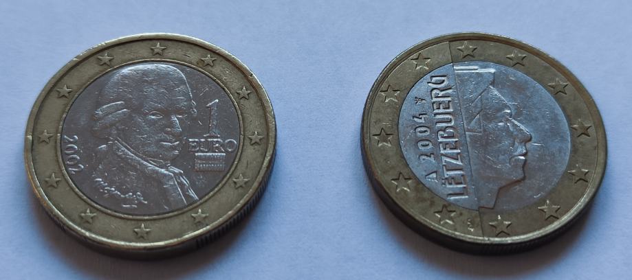 4. Dvije kovanice od 1 eura (Austria & Luxemburg) iz 2002. i 2004. godine, obje kovanice imaju određene pogreške vidljivo na slikama kao i drugi detalji,