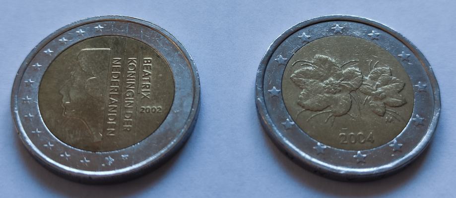 6. Dvije kovanice od 2 eura (Netherland & Finland) iz 2002. i 2004. godine, obje kovanice imaju određene pogreške, vidljivo na slikama kao i drugi detalji,
