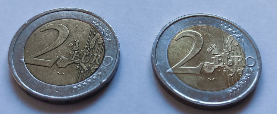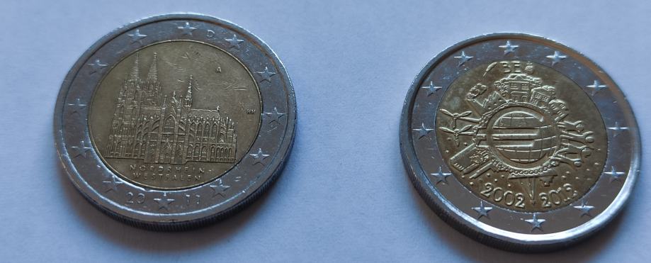 7. Dvije kovanice od 2 eura (Germany & Belgium) iz 2011. i 2012. godine, obje kovanice imaju određene pogreške, vidljivo na slikama kao i drugi detalji,