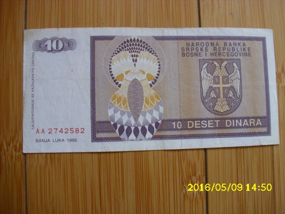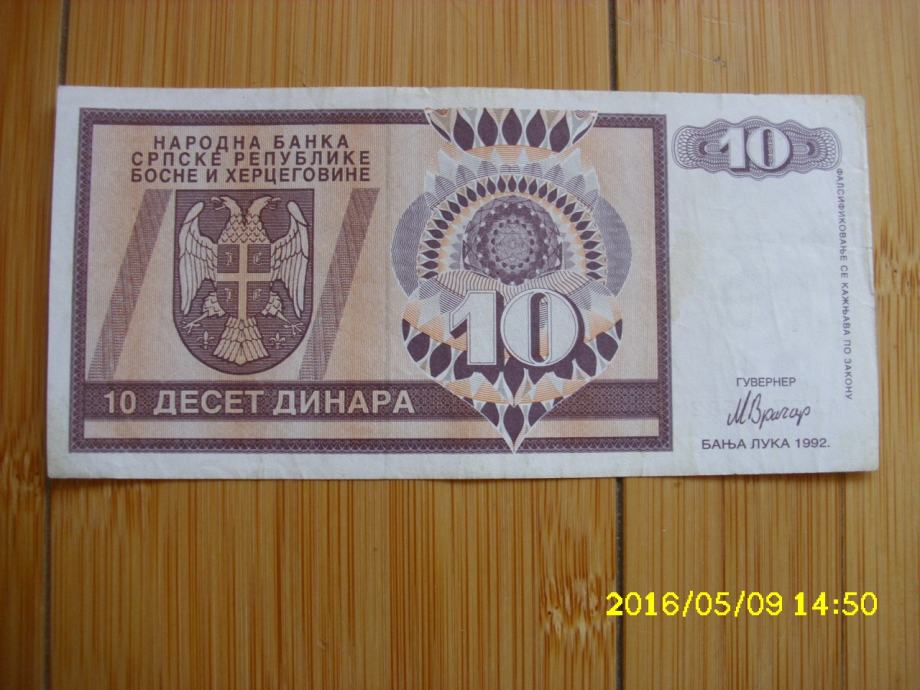 Republika Srpska 10 dinara 1992.