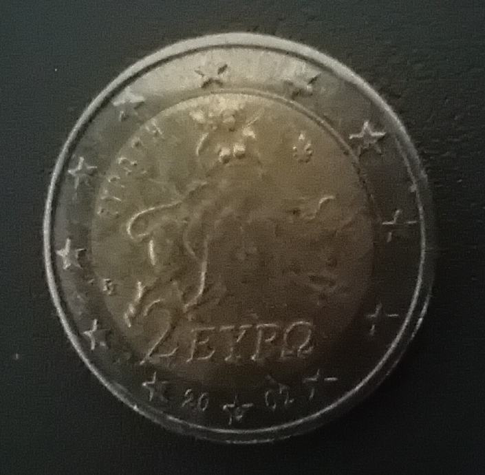 Prodajem rijetku kovanicu 2 E iz Grčke na slici je Zeus u obliku bika, ova kovanica ima slovo s u zvijezdi na dnu kovanice, što označava da su kovane u Finskoj (Suomi), a ne Ateni što ih čini rijetkim i traženim među kolekcionarima.