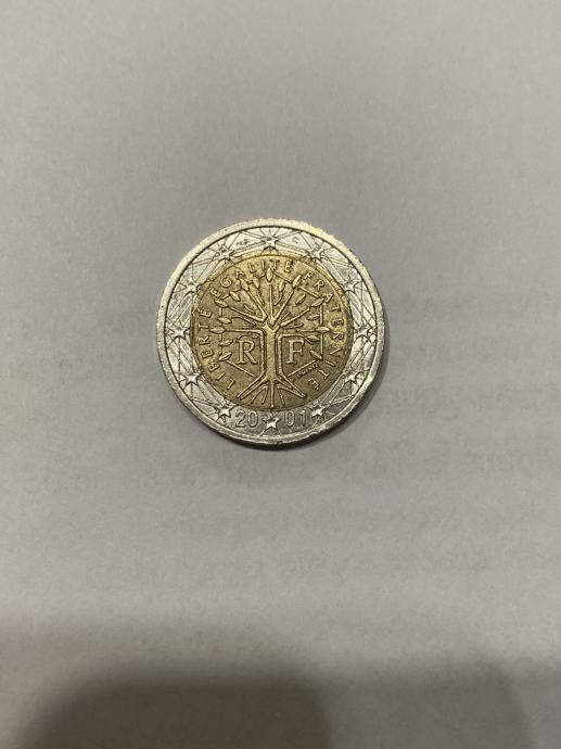 Rijetka kovanica od 2 eura. Drvo života,Francuska. 2001. godina