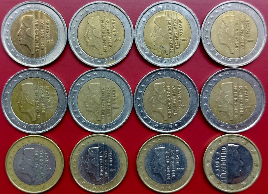 RIJETKE KOVANICE 2 EURA BEATRIX NEDERLANDEN+FRANCUSKA+AUSTRIJA+GRČKA