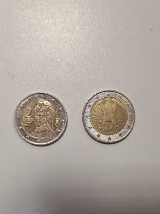 Rijetke kovanice od 2 eura, oba dvije 2002. godina, Berta slobodna žena i njemački orao