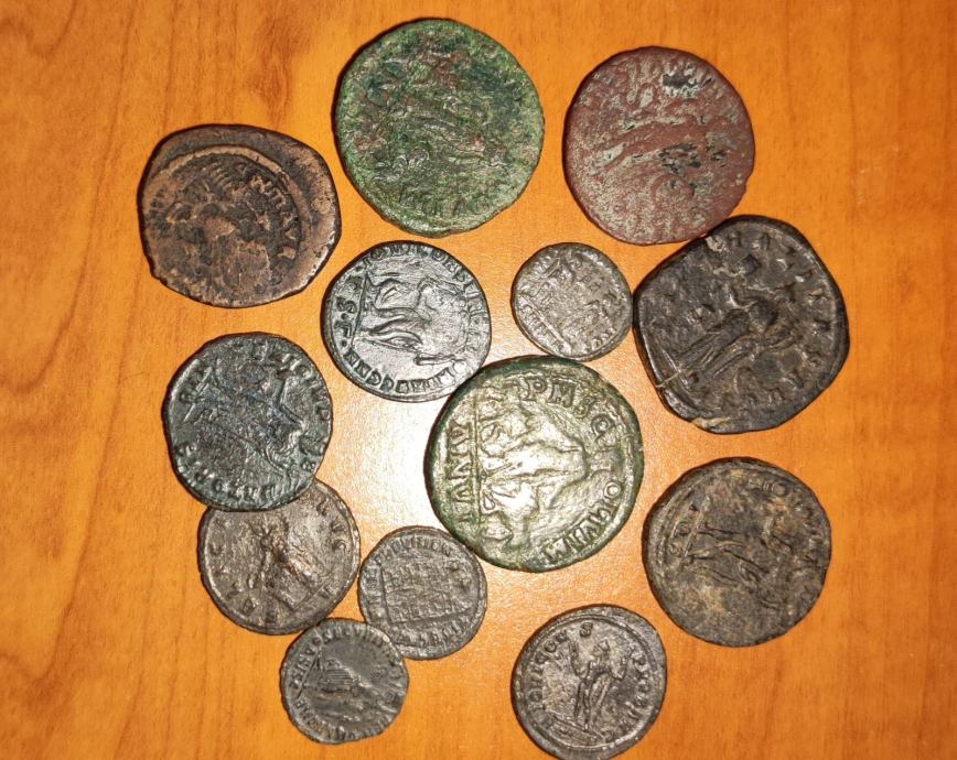 Trinaest novčića od toga nekoliko sesteraca i jedan bizantski novčić.