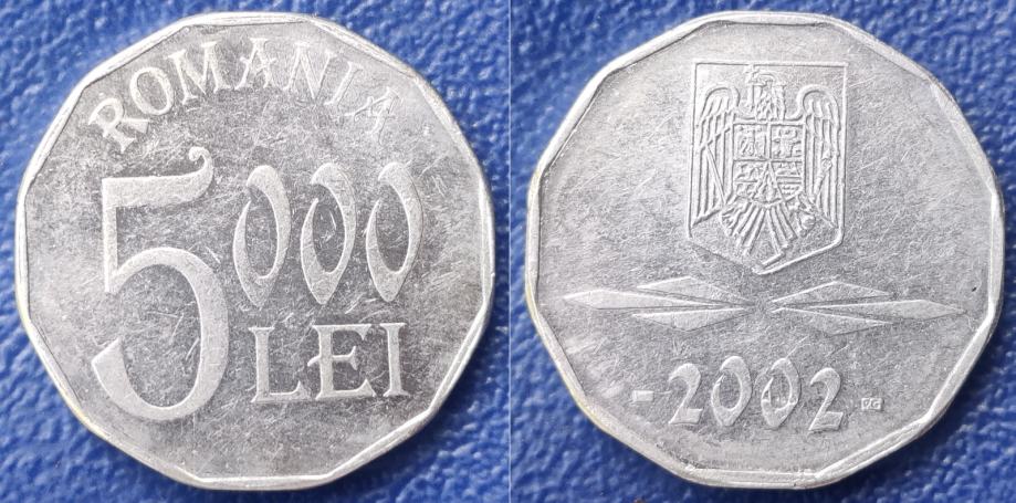 Romania 5000 lei, 2002 / 2,00 EURO !!!