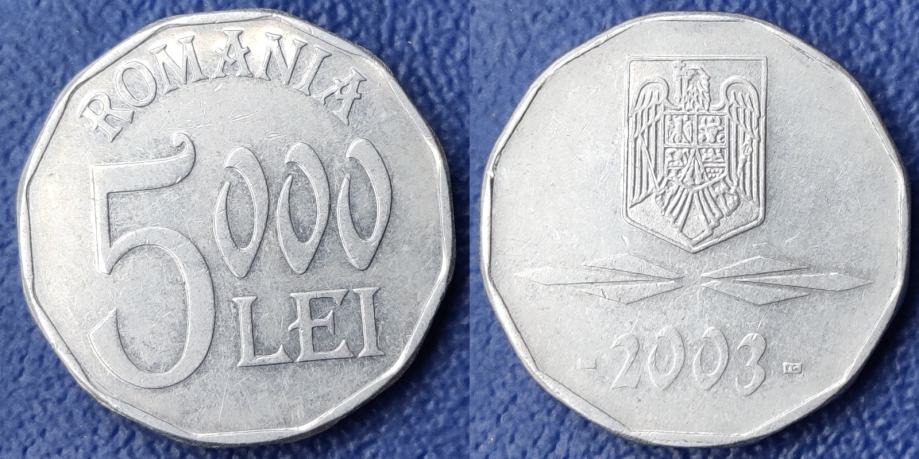 Romania 5000 lei, 2003 Coin alignment (180°) / 2,00 EURO !!!