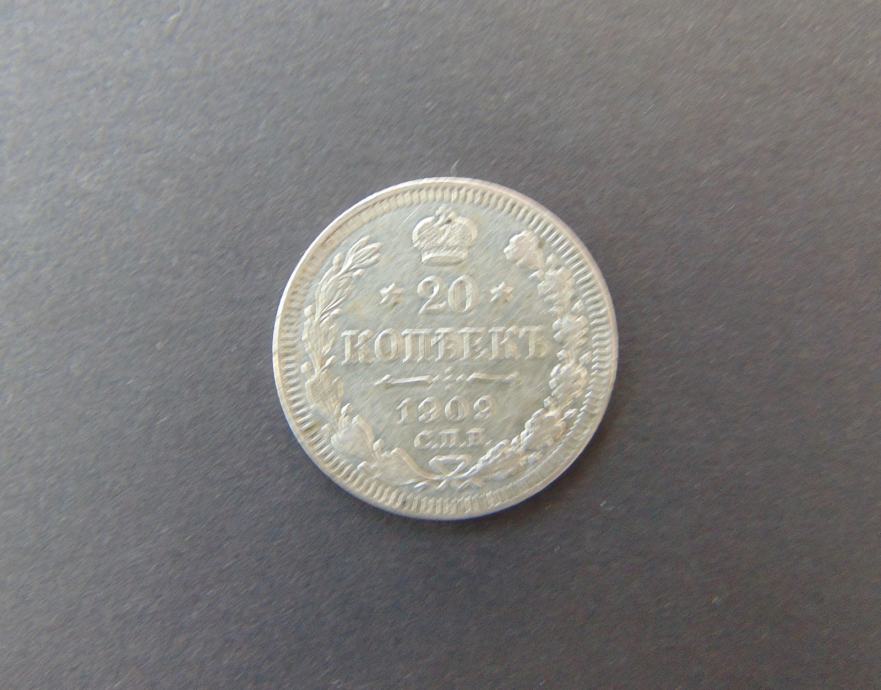 Rusija 20 Kopejki 1909 - Car Nikola II - Srebro - St.Petresburg