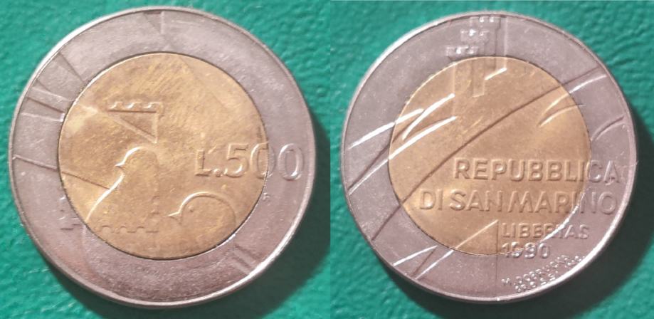 San Marino 500 lire, 1990 Sixteen Centuries of History ***/ 3,00 EURO